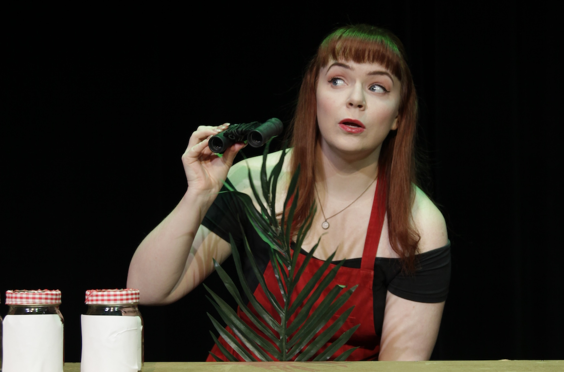 Confessions of a Redheaded Coffeeshop Girl is a one woman show written and performed by Rebecca Perry. It’s currently running at the Alumnae Theatre as part of the Fringe. Perry plays Joanie Little, a recent anthropology graduate with a Jane Goodall fixation and a job in a coffeeshop. Applying her anthropological skills to the shop’s customers she takes us. on a tour of her urban jungle. There’s her silverback boss, the “large black coffee” penguin, her promiscuous peacock ex and Sue the wild turkey jogger; among others.