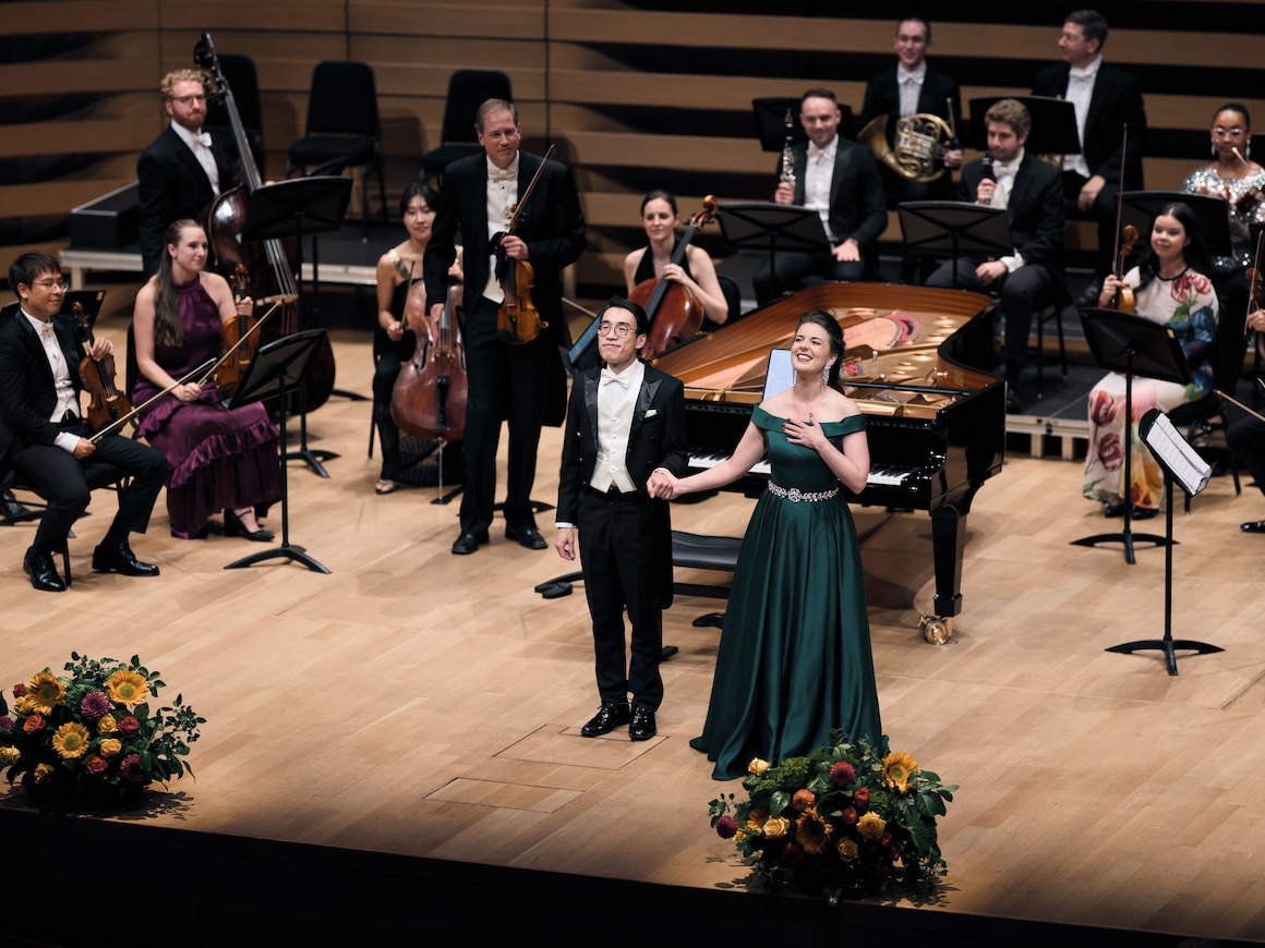 The first half, despite bouncy MCing from Jennifer Mak, was somewhat sedate. The strings of the TSM Festival Orchestra led by Jonathan Crow produced a crisp and elegant Eine kleine Nachtmusik. Violinist Yura Lee and pianist Jonathan Mak combined nicely in Kreisler’s Alt-Wiener Tanzweisen and Přihoda’s arrangement of waltz music from Der Rosenkavalier. The first half closed with the Mozart concert aria “Ch’io mi scordi di te” with mezzo-soprano Simone McIntosh as soloist and full (albeit quite small) orchestra. It’s been a while since I’ve heard Simone live but this was really good; smooth and powerful, and the orchestra was excellent too.