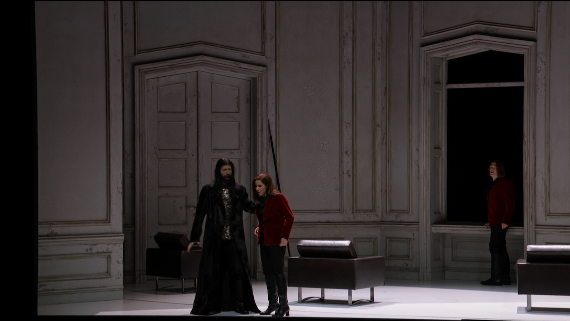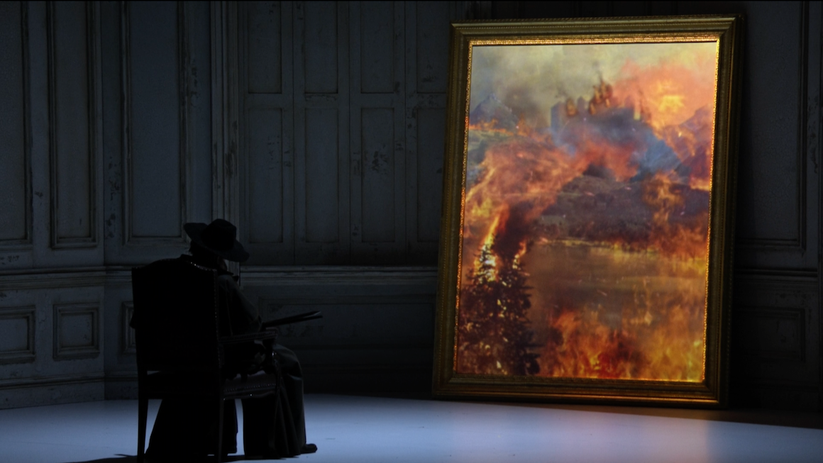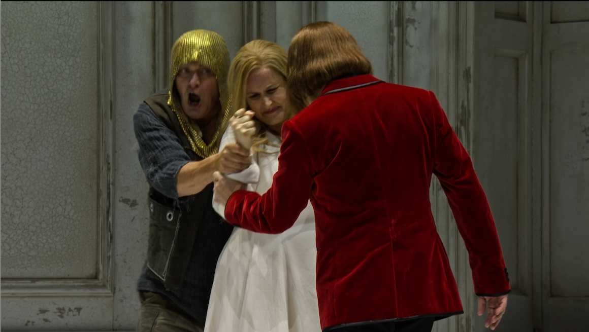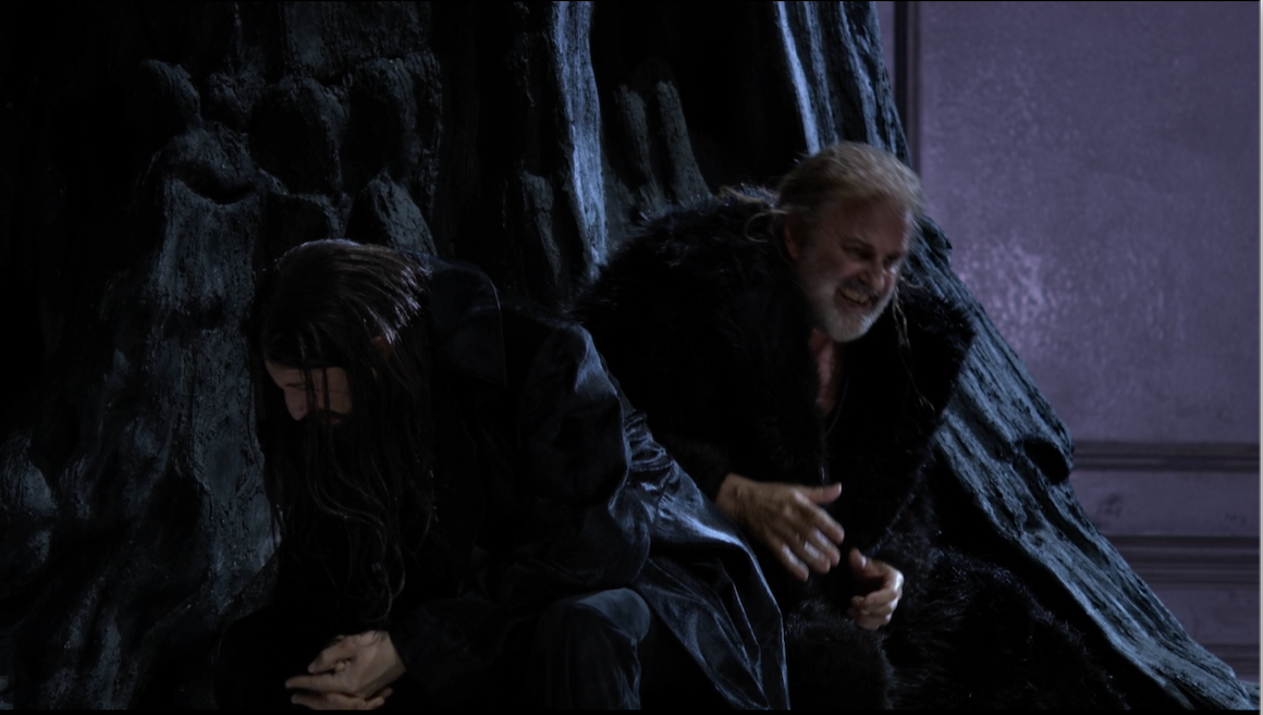 The scene with Waltraute (Sarah Ferede) and Brûnnhilde is intense. It’s unclear whether Brünnhilde is just being stubborn or realises that it’s all up for the Gods, so why bother? The Tarnhelm scene is done pretty well with both men in the frame. Siegfried wears the magic helmet but he’s doubled by Gunther with his face sort of blurred out. It’s intriguing.