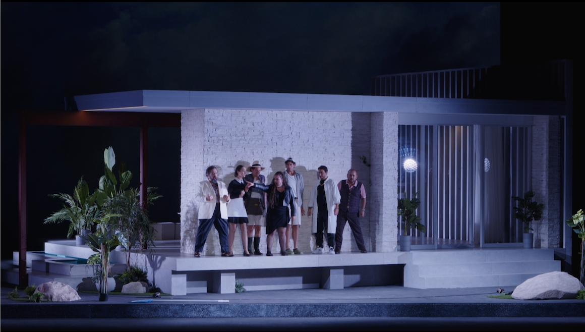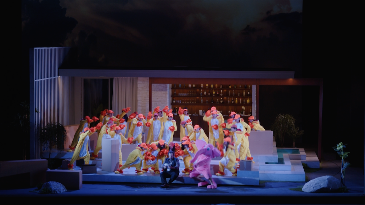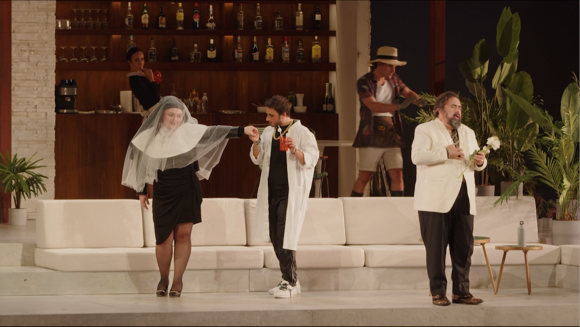 The set is a rotating one that can switch between the well stocked bar of the Pasquale residence or the exterior as needed. The action is pretty straightforward until the third act when it gets a bit weird. In the chaotic scene where Norina is buying all the things a pink elephant appears and the delivery personnel all seem to be furries. I’m really not sure what that was about! But, all in all, it’s straightforward enough but lively and colourful and funny where it needs to be.
