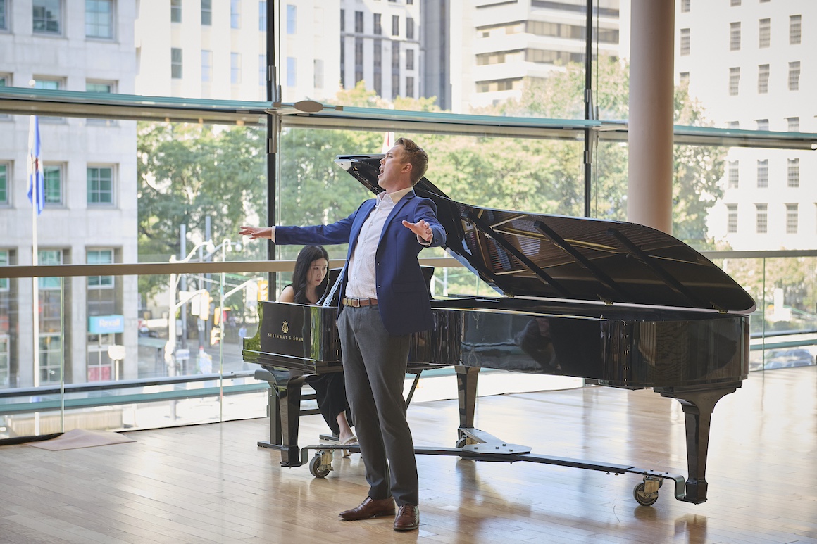 The free concert series in the RBA kicked off on Wednesday with, as usual, a performance by the artists of the COC’s Ensemble Studio. Owing to illness only five singers performed and only one of those, Emily Rocha, was a returnee. The other four singers and both pianists were newcomers. It was short but enjoyable.