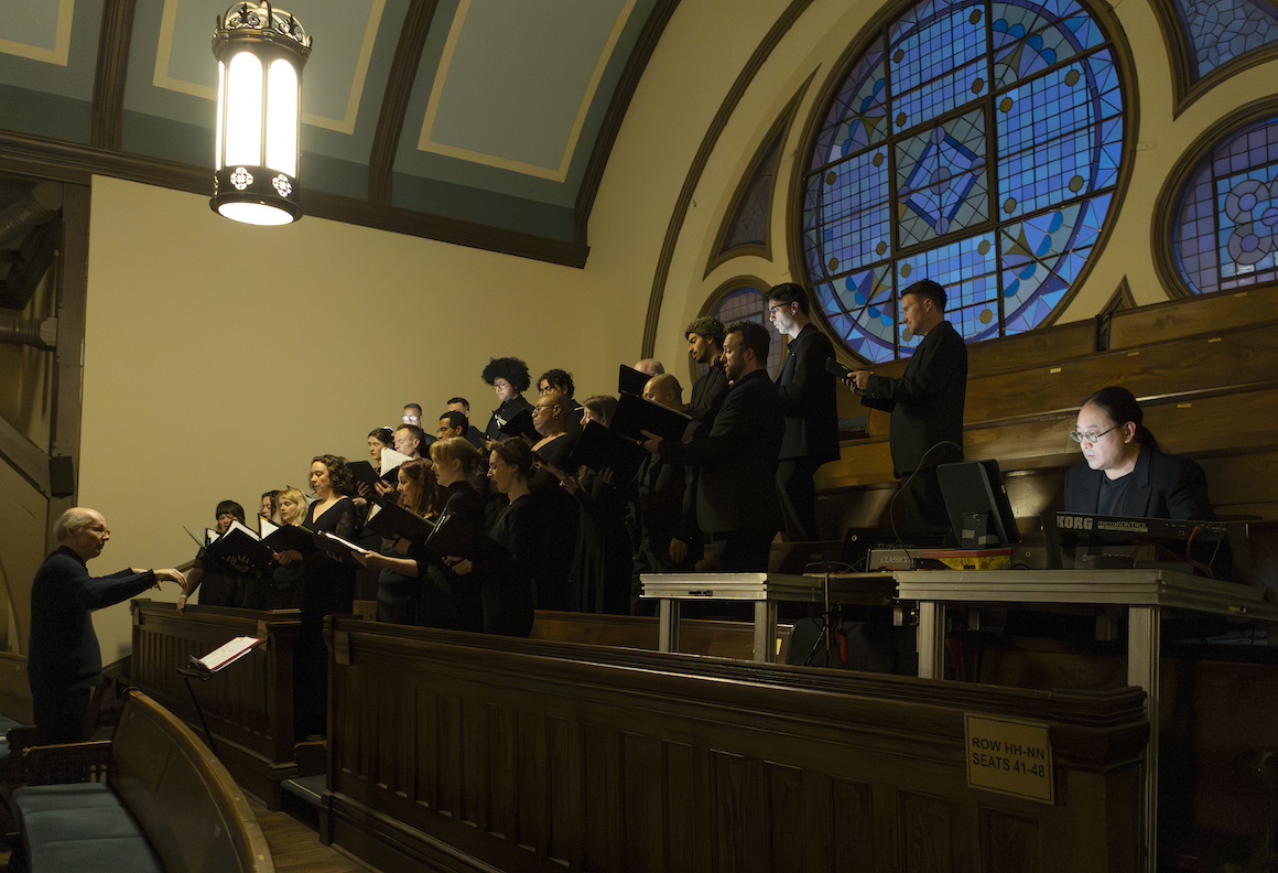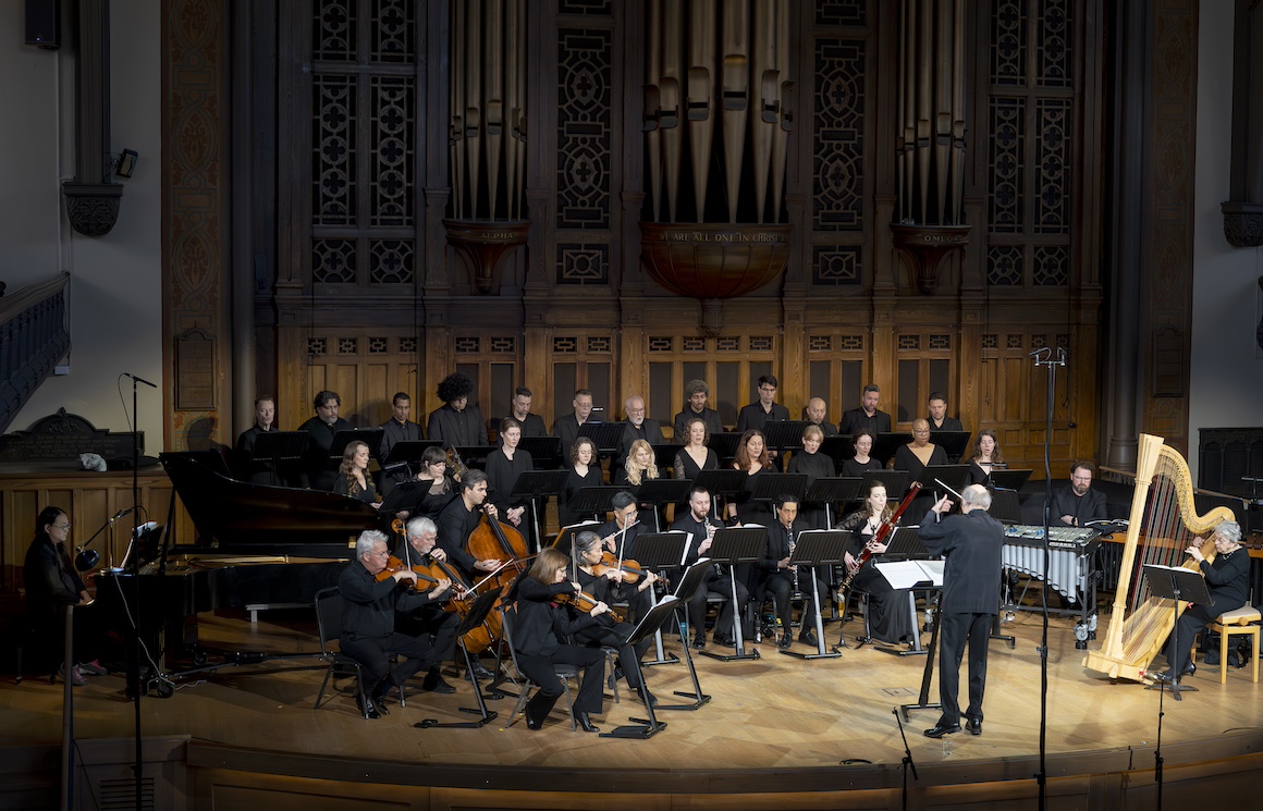 So, before the interval we got a programme of short varied works. There was R. Murray Schafer’s Wild Bird for harp and violin (Judy Loman and Erica Raum) a typically meditative Schafer piece. There were three pieces for the Soundstreams Choir 21 There was Andrew Balfour’s incredibly beautiful Gaze Upon Trees setting text by Ojibway poet Duke Redbird. There was Chris Hutchings’ heartfelt setting of Jane protest against ecocidal indifference; Let Them Not Say. And, finally, Arvo Pãrt’s rather grand setting of Veni Creator Spiritus with Gregory Oh at the impressive organ.