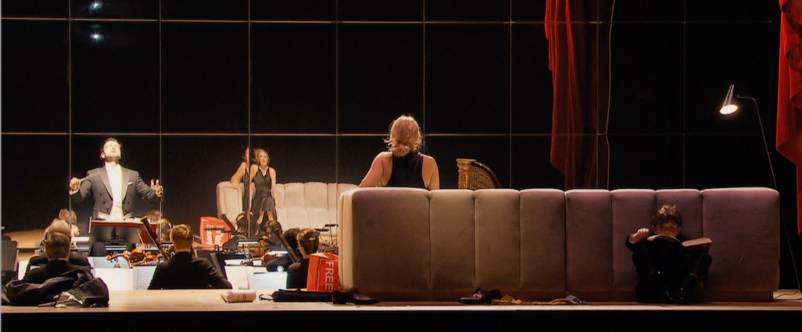 There are other cute touches too. The Storch’s son appears numerous times in miniature evening dress and with a toy piano, not to mention a Lego set of the Sydney Opera House. Towards the end the barrier between “art” and “life: dissolves further. A giant mirror behind the stage is revealed and we see Storch conducting a reflection of the orchestra while Christine sings off her score and the boy conducts his own score from behind the sofa.