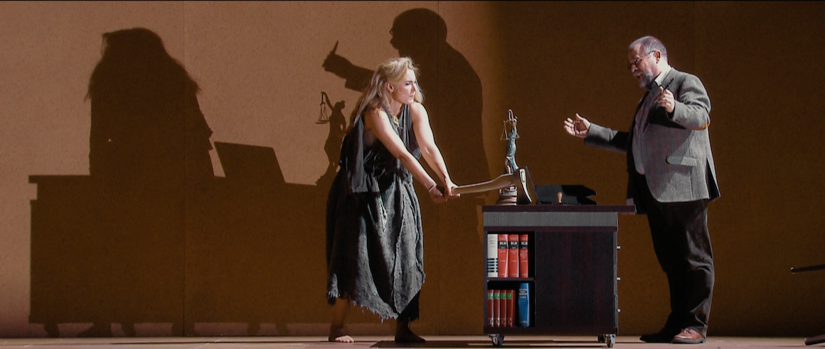There are cute references to a whole raft of other Strauss operas. In scene 5 where Lummer asks for cash it’s set in a scene where he and Christine are playing dress up with various Strauss characters and he’s miming the Presentation of the Rose when he actually asks for the money. There are other points where the projections are old black and white film of various Strauss opera productions but best of all is when Christine goes to the notary to demand a divorce. She’s dressed as Elektra and is swinging a very large axe in a most dangerous fashion.