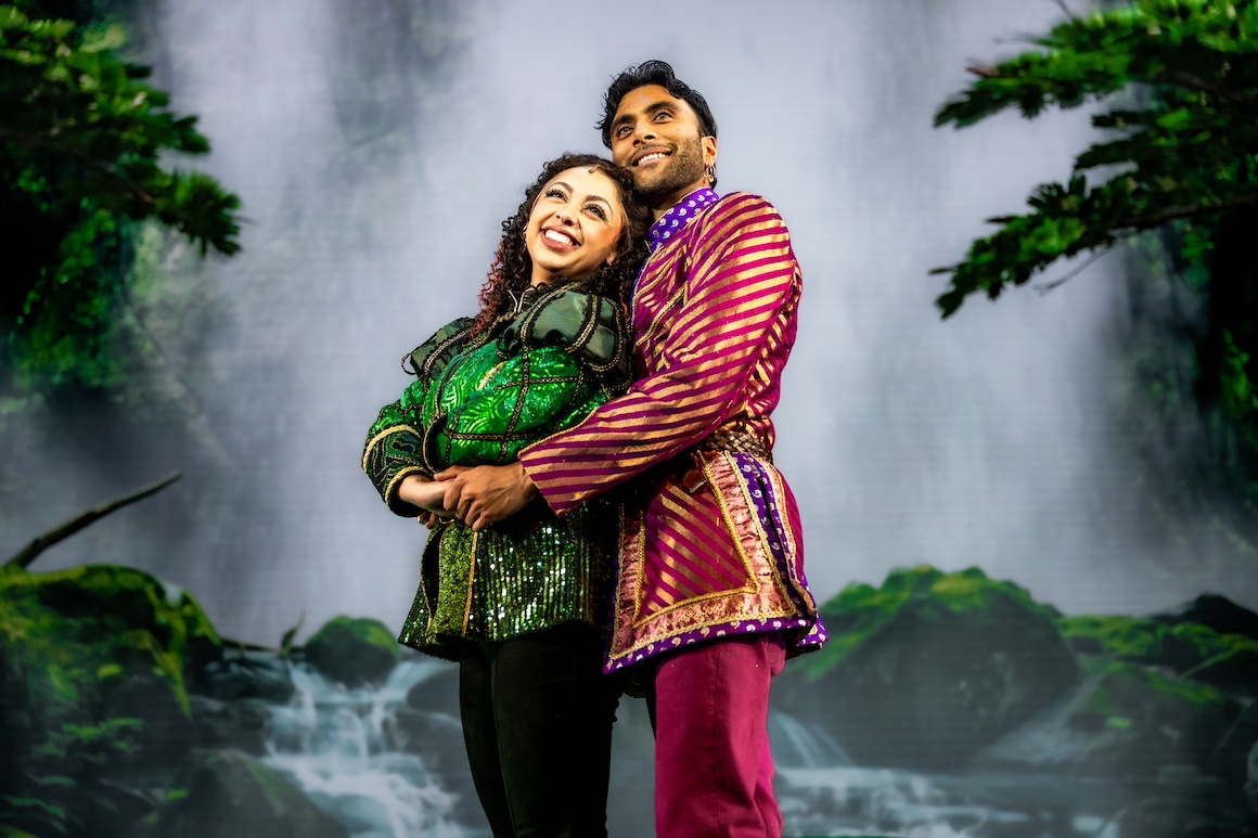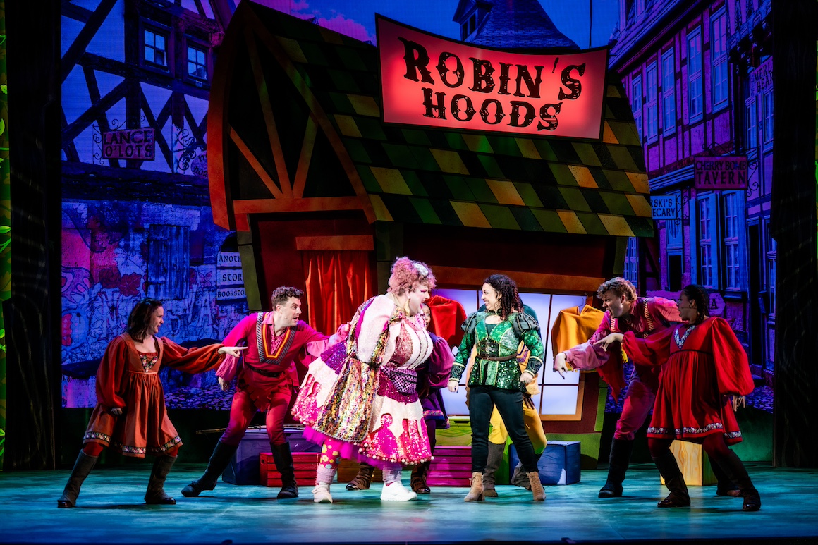 Daniel Williston has the Dame thing pretty much down pat though in some ways one regrets this role didn’t go to some famous classical actor in the way that Ian McKellen has been used elsewhere. Diego Matamoros perhaps? But he’s good and, of course, he gets all the best double entendres; “I’ve seen some pretty big beavers but none that could handle that wood” for example. Praneet Akilla as Marion is kind of a straight man here; playing off both John and Robin and he does it well. Julius Sermonia and Eddie Glen as Little John and Friar Tuck work well together and are pretty funny. The Ensemble plays, as one would expect, a range of characters and there’s some suitably goofy acting and real physicality and energy in the song and dance numbers.