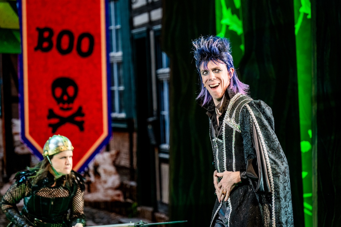 I was impressed by how some really good serious actors committed themselves to the panto thing. Damien Atkins (De Profundis, Here Lies Henry) is a splendidly camp Prince John who managed to convey the kind of banal evil one associates with, say, Elon Musk rather than Captain Hook! He does the proper villain thing with the audience, especially the kids, too. Julia Pulo as Robin is a really good mover, sings nicely and is just every bit as engaging as a panto Principal Boy/Girl should be. She also brings a really infectious energy to the show and interacts well with the audience.