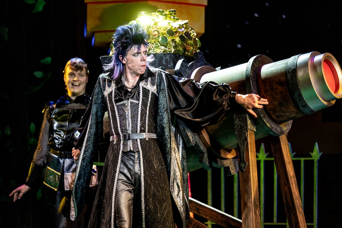 There’ no lack of the traditional panto elements. There are singalongs, scenes where the audience is expected to warn the good guys of looming danger, kids from the audience pulled into the action, sexual double entendres which the kids in the audience aren’t supposed to understand but probably do. All this is fitted into a very modern vibe that owes more to music videos and recent Disney films than to music hall or commedia. There are very energetic dance numbers and the music is a kind of generic post 80’s pop. With lots of amplification a four piece instrumental ensemble can sound pretty impressive!