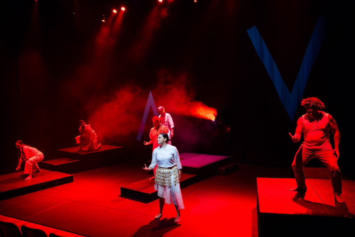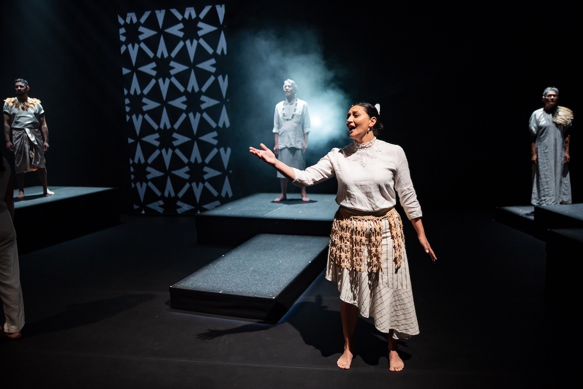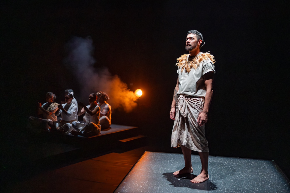 The answer is always “islands in the Ocean”. Pasifika to its people though Europeans call it by many names. All of this is accompanied by facial and body gesture. If you have ever faced a haka (and I have) you’ll recognise it. The physicality, the haze, the evocative lighting and the sound design will be with us throughout to great effect.