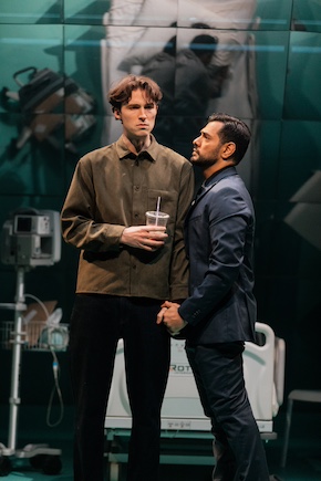 In the play the purchasers are a New York gay couple; Sameer, a wealthy lawyer of Muslim background, who is extremely aggressive, narcissistic and has a fraught relationship with his mother, and Jake, his younger, less obnoxious but a bit “let’s all hold hands and sing Kumbaya”, writer husband. The surrogate mother is Marya a Muslim immigrant from Houston who has just lost her husband to cancer and has massive medical debt. She is experiencing severe problems with the pregnancy and is hospitalised in Louisiana. Why she’s in Louisiana isn’t clear. Enter Nurse Christina Bedford who carries a whole lot of baggage; religiously based ideas of Family, failed IVF treatment and a deep mistrust of the whole surrogacy thing which she clearly sees as about rich men exploiting poor women. Packing all this narrative in is pretty impressive but a bit relentless.