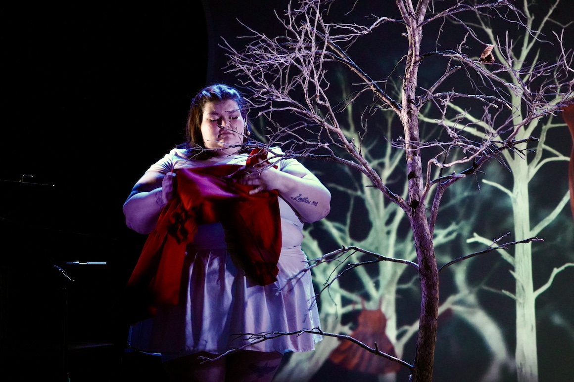 Emma Pennell’s Red Daughters was a more autobiographical piece.connecting the experience of a young Indigenous woman moving from a rural setting to become a singer in the city against the ever present backdrop of Murdered and Missing Indigenous Women and Girls and the red dresses that symbolise/memorialise them. Spencer Kryzanowski’s score, composed in less than a week, provided a richly romantic support to Emma’s powerful singing. Piano score only here but really with just a few days to write it one could hardly expect orchestration!