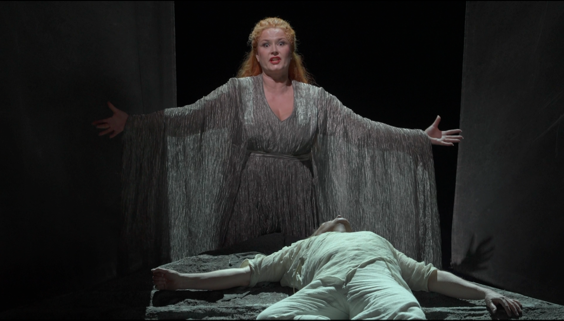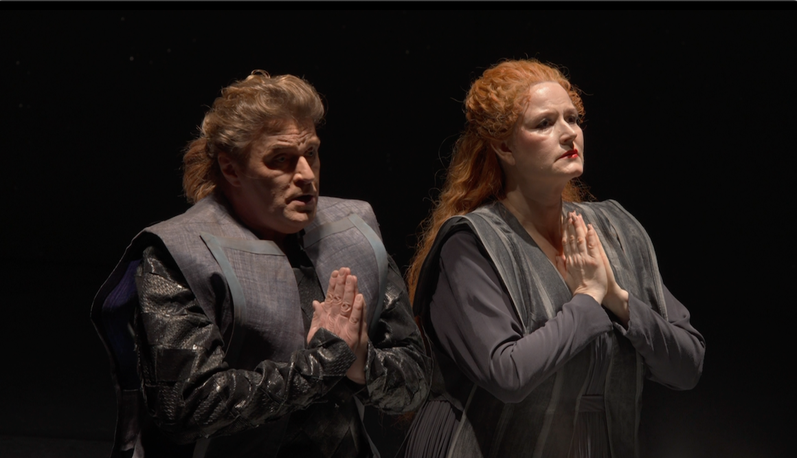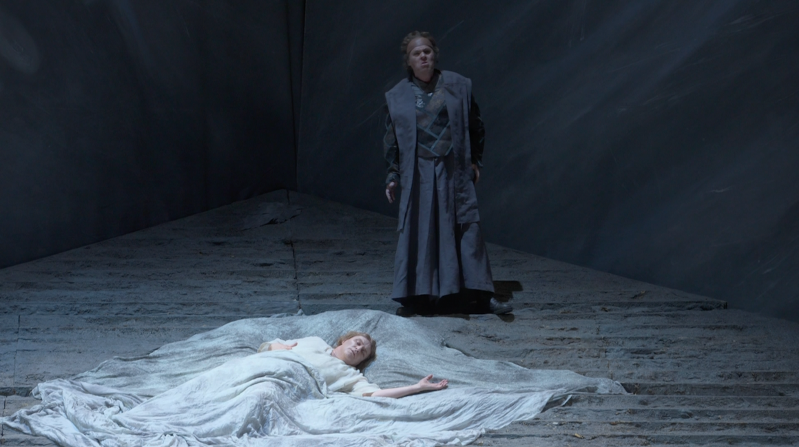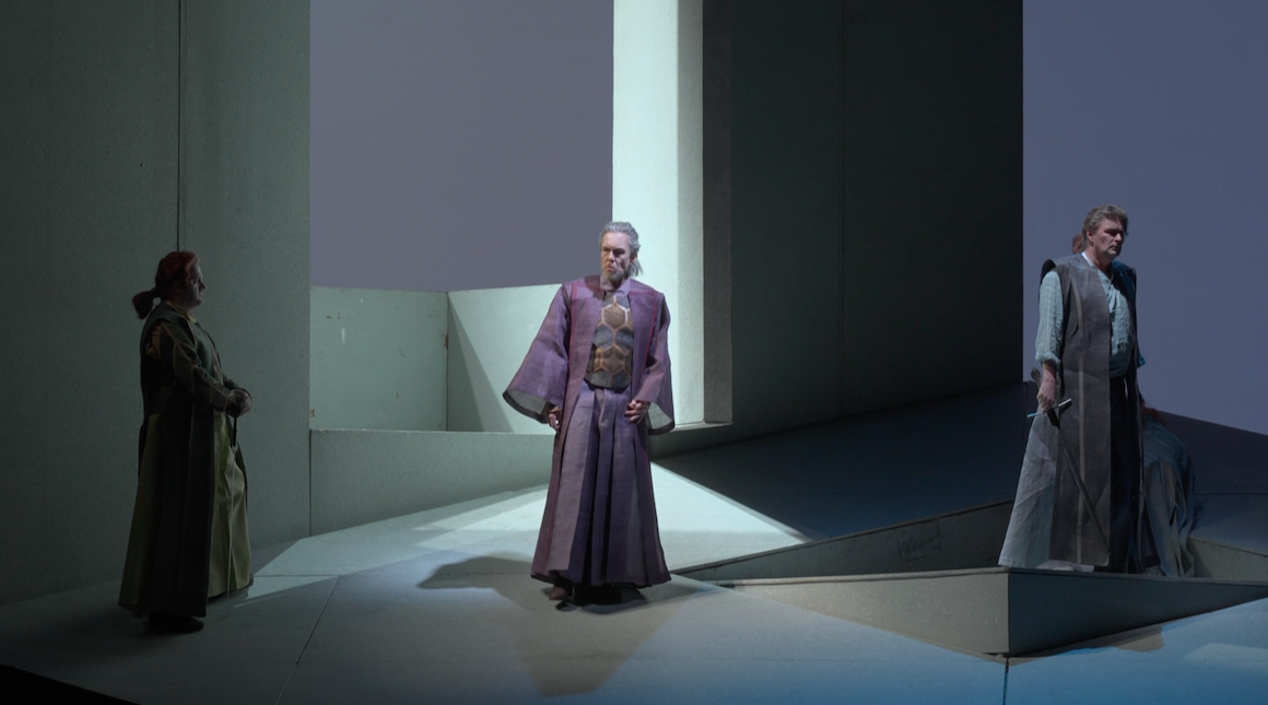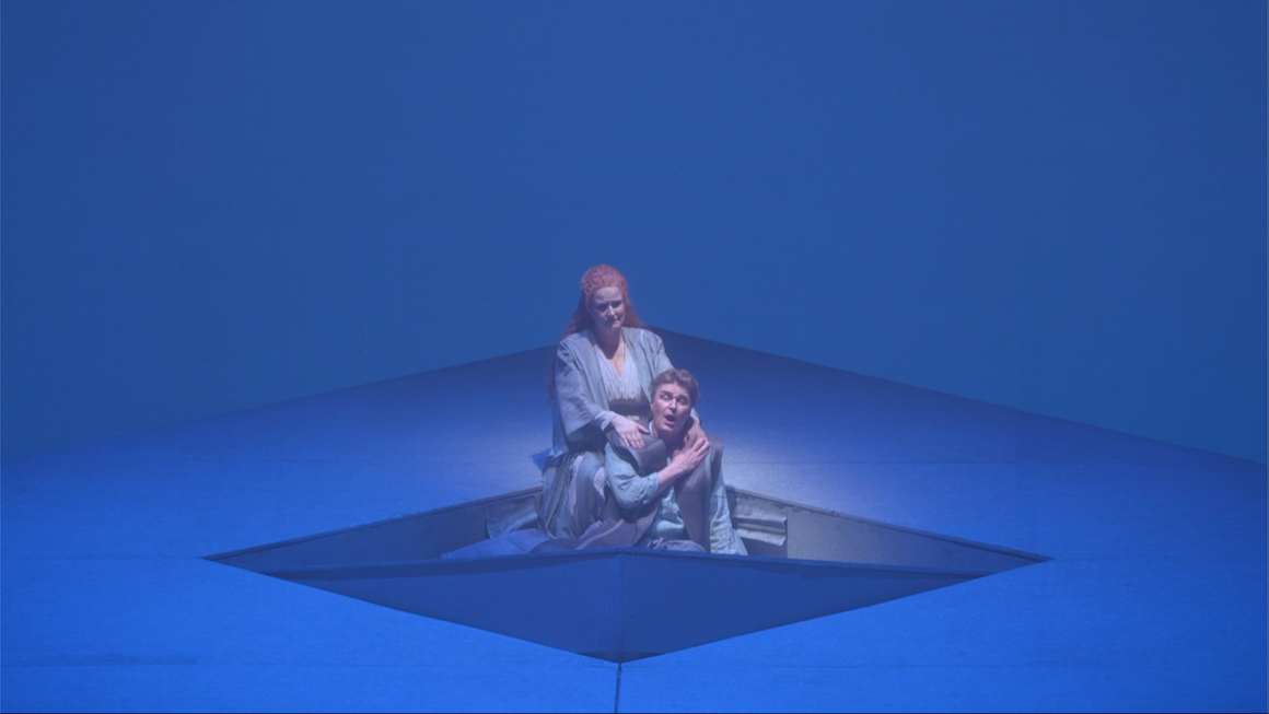 Marco Arturo Marelli’s production of Wagner’s Tristan und Isolde first appeared at the Semperoper in Dresden in 1995. It was revived in 2024 and recorded for video. It’s an elegant, straightforward production. There’s no “concept” but equally there’s not much attempt at “realism” either. Sets are monumental and abstract. Costuming is opera house medieval. On the few occasions props are needed they are what they are; a cup, swords etc. Atmosphere is mostly down to the lighting and the focus is on the singing and acting.