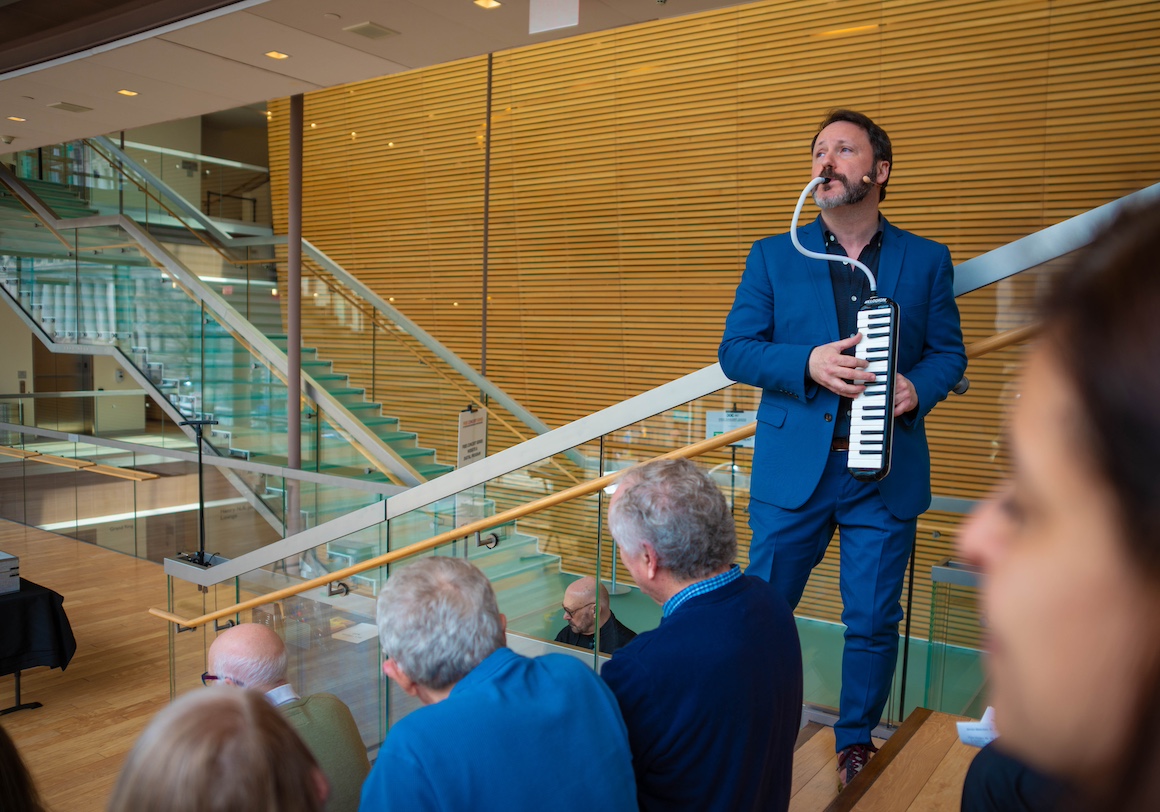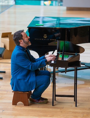 Room of Keys is a short monodrama written for actor/pianist Adam Sherkin by David James Brock. It had a short run a couple of weeks ago in a production directed by Tom Diamond at the Nanostage on Bloor which I missed (due to getting stuck on the TTC) and was reprised on Thursday in the RBA at lunchtime; though how far they were able to reproduce the staging I’m not sure.