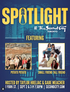 Every few weeks Second City hosts a couple of sketch comedy acts for two nights in their Theatre 73. Last night and tonight it’s Toronto troupe Potato, Potato and Montreal based Small Friend Tall Friend. Details on this are going to be a bit sparse as the house programme contained almost no useful information and the two groups web presence seems to be limited to Instagram (Kids these days!).