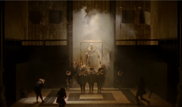 Phyllida Lloyd’s 2000 BBC film of Britten’s Gloriana, based on her production for Opera North, is quite fascinating. The bonus interviews reveal the utter disdain for films/videos of stage opera productions held by pretty much everyone involved in the project. It’s an interesting perspective to hear in a world where Cinema and streaming HD broadcasts are increasingly common and where Blu-ray/DVD has clearly overtaken CD as the preferred medium for opera recordings. In some ways, of course, it’s because the technology has improved enormously. DVD was still relatively new in 2000 and widescreen, flat screen TVs were yet to come. In any event, this attitude led to the creation of a rather interesting film.