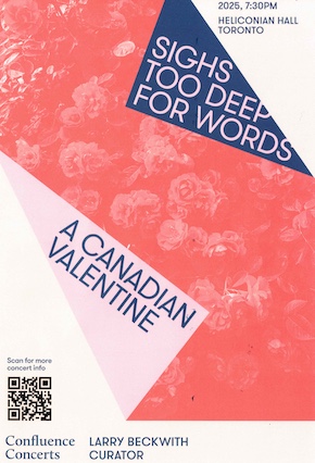 Friday evening at Heliconian Hall saw the second of two performances of Confluence Concerts’ Sighs Too Deep For Words: A Canadian Valentine. It was an all Canadian concert featuring songs and spoken word including two world premieres and a performance of Omar Daniel’s 2005 piece Neruda Canzones.