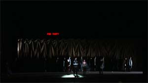 Brecht and Weill’s Rise and Fall of the City of Mahagonny is an awkward work for an opera company. It’s been said, rightly I think, that one can/must situate it in a triangle of which the vertices are opera, musical theatre and Brechtian theatre. John Doyle’s 2007 production for Los Angeles Opera is strong on the opera and musical theatre dimensions but decidedly unBrechtian. Despite a good idiomatic translation by Michael Feingold this production seems unwilling to skewer capitalism in the manner Brecht intended. It’s the polar opposite of the Salzburg recording that left no Marxist cliche unexplored. Maybe it’s a failure of nerve. Maybe capitalism in LA is already such a parody of itself that further skewering is impossible. Who knows? Even Act 2, which is all about the commoditization of basic human pleasures doesn’t really fire. Sure we get excess and commoditized sex but there’s no sense that the commoditization is dehumanising or transgressive. Sex for sale? Of course! It does get a bit darker in the final act with the trial and execution of Jimmy and finishes strongly on “Still we only built this Mahagonny” but by then it’s very much too little, too late. The lack of edge is reinforced by the orchestra under James Conlon. It’s all just too civilized. There’s none of the spiky dissonance one is used to in the score and the brass, in particular, sound like they are playing in the Palm Court of the Hilton.
