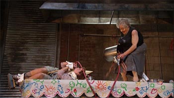 Unsurprisingly, modern directors have tended to emphasize the darker side of the work and Richard Jones is no exception. Hunger is the driving force here and each act is set in a kitchen. A poor peasant cottage in Act 1, a dream like banquetting facility in Act 2 and the Witch’s nightmarish cake factory cum kitchen in Act 3. Much food is thrown around and smeared over people. It’s pretty succesful as a concept if a bit one dimensional.