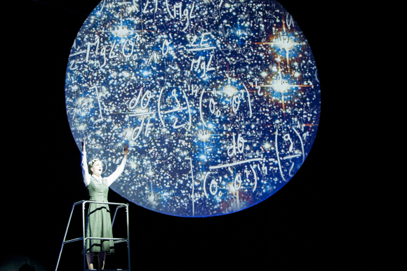 Shelter; music by Juliet Palmer, libretto by Julie Salverson, has been ten years in the making. It premiered in Edmonton a couple of years ago, finally, got its Toronto premiere at the Berkeley Street Theatre last night under the auspices of Tapestry. It’s a complex and eclectic piece dealing with what it is to be human in a nuclear age. There are two parallel plots which intersect in a way that makes dramatic sense but violate conventional notions of synchronicity. This is, after all, a piece rooted in post Einsteinian physics. The first concerns Austrian Jewish physicist Lise Meintner, one of the discoverers of nuclear fission. She has been forced into exile by the Anschluss and is seen here refusing to work on the Manhattan project. The second plot concerns a highly stereotypical 1950s American couple Thomas and Claire who meet at a social, marry and quickly produce a child; Hope. Their “American Dream” is shattered when it turns out that the baby glows! Fast forward 21 years and Hope is demanding her freedom in a world from which she has thus far been sheltered. Reenter Meintner, engaged by Thomas to be Hope’s tutor, and still obsessing about the Manhattan project. The final twist comes with the arrival of the Pilot, in WW2 Army Air Corps uniform, who uses a Geiger counter to find his prey. He fails to convince Meintner to change her mind but does persuade Hope to fulfill her destiny as He pilots the Enola Gay to 31,000 feet and a clear sky. It’s weird, disturbing and powerful.