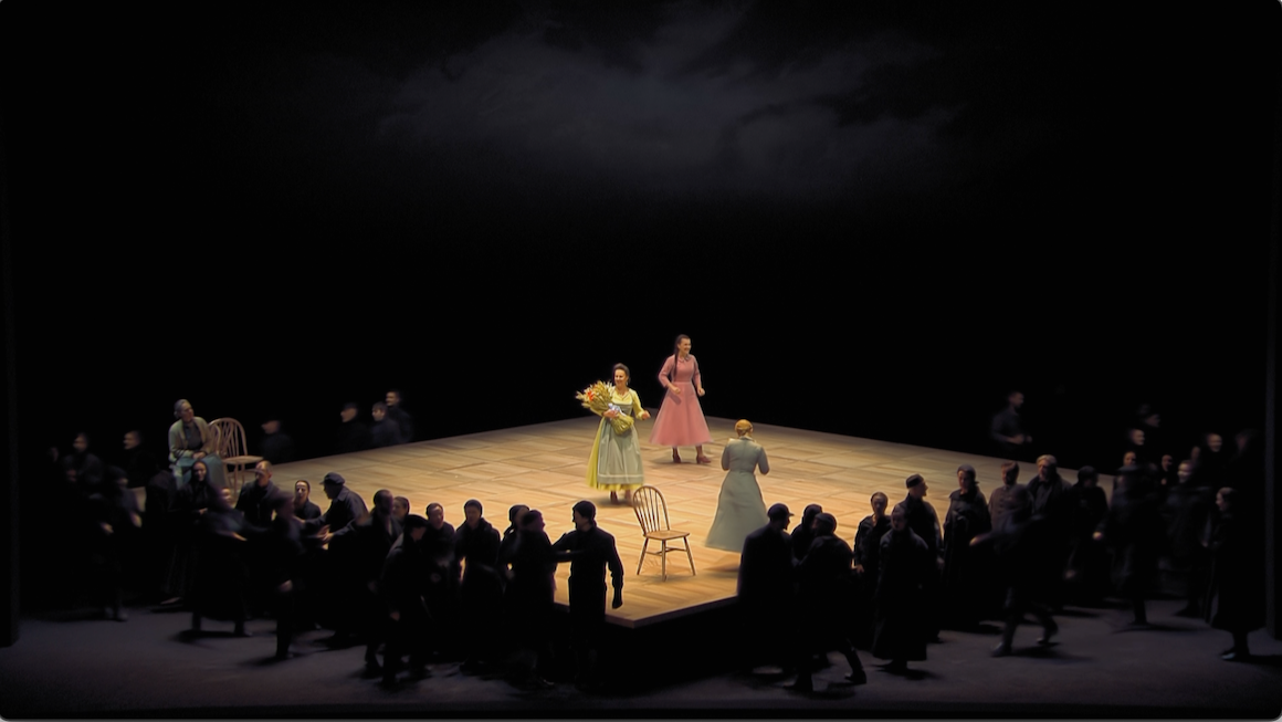 Laurent Pelly’s production of Tchaikovsky’s Eugene Onegin was recorded for video at La Monnaie – De Munt in 2023. It’s a severely minimalist production set somewhere, around 1900 or so. I say somewhere because there’s nothing very Russian about it. It could be any country gentry and peasants scenario followed by a society ball. There are no uniforms in sight. Even Gremin wears ordinary evening clothes, albeit with orders and medals.