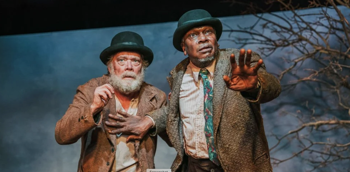It’s been 73 years since the first performance of Samuel Beckett’s Waiting for Godot and Vladimir and Estragon are still waiting. The play though has become an established icon of experimental 20th century theatre and millions of words have been written about it. It’s currently running at Coal Mine Theatre in a production directed by Kelli Fox. As far as I remember (and it’s been fifty years since I read the play) this production plays it straight and pretty much entirely according to the stage directions in the script. The set is a tree and a bunch of dirt. Nobody sits in a dust bin. So everything turns on subtlety and timing which is quite a challenge.