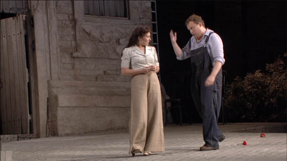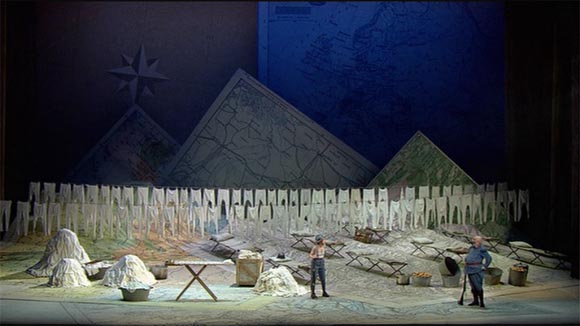 Laurent Pelly’s 2007 production of Donizetti’s La Fille du Régiment was a coproduction of the Royal Opera House, The Metropolitan Opera and the Wiener Staatsoper which one make expect to produce a stodgy snoozefest. It’s not. It’s a fast paced, energetic and funny production. There’s nothing especially cleverly conceptual about it but its well designed, well directed and well played. If one were to be hyper critical it would be that the humour in Act 2 is rather laid on with a trowel but it’s not too seriously overdone. The setting is updated from the wars of the first Napoleon to something vaguely WW1 like. In some ways this doesn’t make a whole lot of sense but it does provide a visual “Frenchness” that’s probably easier for modern audiences and, anyway, the libretto as originally written is about as historically accurate as the average piece of bel canto fluff. Best not get into serious military history buff territory and get on and enjoy the show.