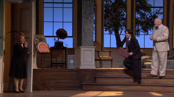 Richard Jones chose to set his 2009 production of Verdi’s Falstaff in Windsor in 1946. I suspect it’s driven by similar reasoning to Robert Carsen’s 1950s production. Falstaff plays out very nicely as a conflict between an older order of things and a more thrusting kind of bourgeoisie and 1940s/50s England works well for that. The “just after the war” setting also allows Jones to present Fenton as a G.I. which adds another twist to Ford’s distrust of him. Although the jumping off point for Jones and Carsen is the same the results are quite different. Jones seems to be operating in the traditions of English farce, à la Brian Rix, or maybe Carry on films,which works pretty well. Falstaff is a farce rather than a comedy of manners. So, besides the obligatory entrances and exits, couples caught in flagrante etc we also get a certain geometric precision in the blocking that borders on choreography. In Act 1 Scene 2, for instance, the ladies rather military perambulation in a garden of very precisely aligned cabbages is doubled up by Brownies and a rowing four countermarching.