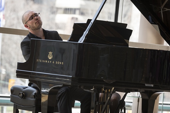 Against the Grain is a newly formed company of youngish performers. Many of them are products of the COC’s Ensemble Studio. This was not an amateur show! What we got was a somewhat abridged version of La Bohème in a new English translation by Joel Ivany (who also directed) adapted to include the translation in place and time to contemporary Toronto sung with piano accompaniment and staged in and around the audience. The piece opens with Rudolfo and Marcello squatting at the Tranzac where, the libretto informs us, it is “fucking cold”. It rolls on from there in a similar vein and it’s very effective.