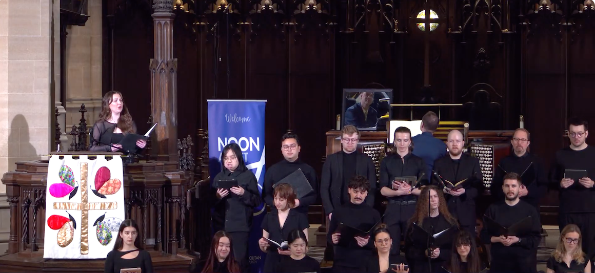 Last Thursday lunchtime’s Noon at Met concert was given by the UoT’s Schola Cantorum conducted by Daniel Taylor with Jonathan Oldengarm at Met’s very impressive organ. The music was Fauré’s rather unusual Requiem op.45.  I say unusual because it’s much more gentle and lyrical  than most, not least because there’s no Dies Irae.  That’s cut except for the Pie Jesu section.  Also it finishes with the hopeful In Paradisum from the Burial Service.  Apparently this is because Fauré was most definitely not an orthodox Catholic rather lying somewhere on a spectrum from theist to agnostic but obviously still aware that we all die and we all grieve.
