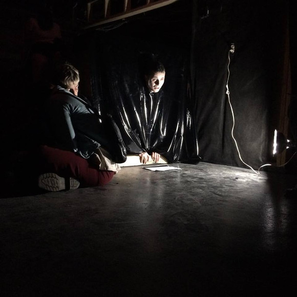 Great idea. Create a sort of spooky, short opera program in a funky location and use it as a fundraiser for your next major project. That was Darknet at Mây last night. Jennifer Krabbe, singing Berlioz, rounded us up in the bar and ushered us downstairs into an installation created by Alessia Naccarato and Noah Grove. It was dark. It was eerie. We were offered masks. Cairan Ryan sang The Cold Song from Purcell’s King Arthur while writhing on the floor. Jonathan MacArthur sort of emerged from some sort of primeval goo singing Aria by John Cage and Beth Hagerman gave us one of Lulu’s arias. Then we were rounded up and ejected into the light again. Loved it.