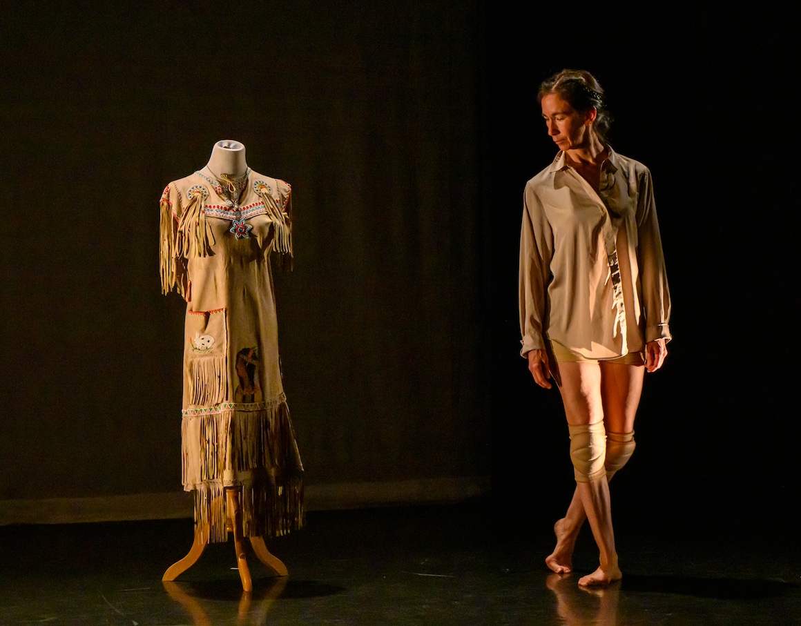 I made a rare excursion into the world of dance on Friday evening to catch Barbara Kaneratonni Diabo’s one woman show What We Carry presented by Native Earth Performing Arts and A’nó:wara Dance Theatre. Barbara is Kanien’keha;ka originally from Kahnawake and as well as being trained in classical and contemporary settler dance traditions she’s also a powwow performer in a range of dance disciplines. She also has a pretty complex personal history. All of this bears on what happens in the 45 minutes or so of this show.