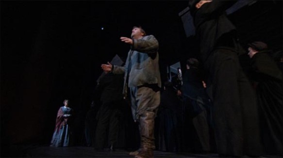 It’s an odd production. The director (Tony award winning – run for the hills) John Doyle, was the first to use, I think, what has now become a Met cliché; a wall with windows running the whole width and height of the set. In this case it can be moved forward and back but mostly it’s forward compressing the depth of the stage. The idea is to convey the claustrophobic nature of the Borough which is fair enough but mostly what it does it confine the enormous chorus to a space it barely fits in meaning there are few options but to have it face straight forward in serried ranks and sing. To be fair, there are scenes where it’s very effective; the opening inquest scene for example and “Peter, we’ve come to take you home” in Act 3. It’s much less successful in, for example, the pub scene. The production is also very dark. This always bothers me because despite eating vast quantities of carrots my night vision isn’t great. I don’t really get it.