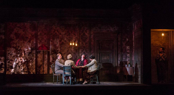 UoT Opera’s fall production opened last night at the MacMillan theatre. It’s a double bill of Menotti works; The Telephone and The Medium. The former was cleverly updated by Michael Patrick Albano to reflect the age of the smartphone. It actually seems more relevant than ever and, slight as it is – an extended joke about a girl who won’t get off the phone long enough for her fiancé to propose – it was wryly amusing. The Medium I’m not so sure about. It’s a contrived piece written in the 1940’s but set a few years earlier about a fake medium and her deluded clients. It seems dated, not so much in the sense that seance attendance is pretty unusual today, but in the extent to which the characters are clichéd, cardboard cut outs even. The medium herself is bad enough but her sidekicks are her rather dippy, if kind, daughter and a boy who is mute (k’ching), Gypsy (k’ching) and “found wandering the streets” (k’ching, k’ching) “of Budapest” (k’ching, k’ching, k’ching). The first act in which the fake seancery goes on isn’t bad but then the medium gets a shock; a real or imagined cold hand on her throat (probably imagined as she is a raging alcoholic) and decides to go straight. The second act is pure bathos. I can see why it was a Broadway hit in the 1940s but I think tastes have moved on. And who the heck calls their daughter “Doodly”?