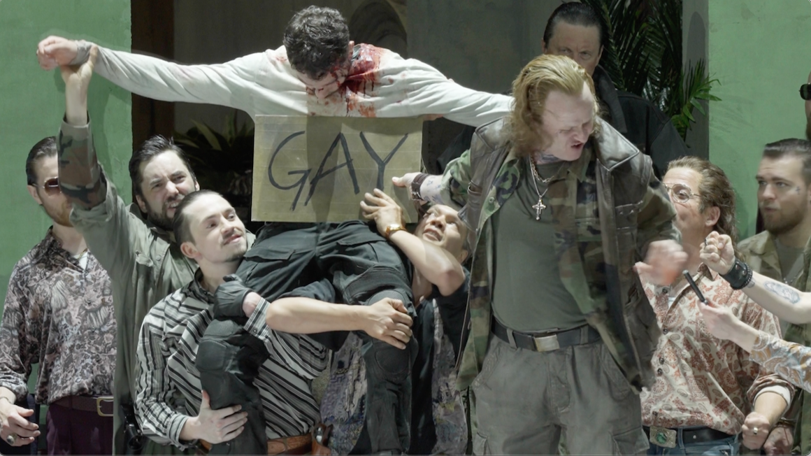 Rossini’s early opera seria Tancredi is set in Syracuse in the early 11th century and turns on two rival families coming together in the face a threat from both Byzantines and Saracens. The hero is the knight Tancredi, secretly in love with the daughter of one of rival families. Jan Philipp Gloger’s production filmed at Bregenz in 2024 updates it to the present with the families being rival drug gangs and the “threat” the police. There’s a further twist. Tancredi is a mezzo role and always sung by a woman. Here Tancredi is played as a woman pretending to be a man; at least to everyone except her lover Amenaide.