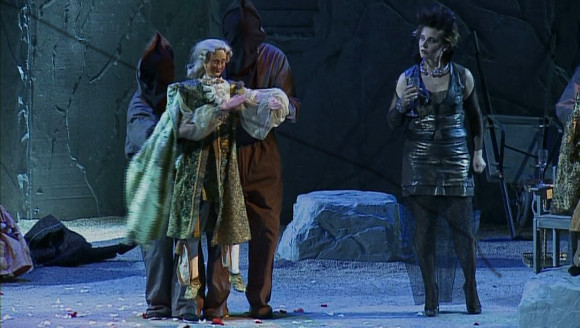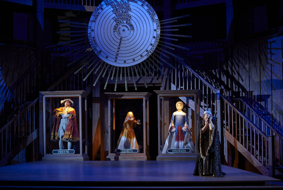 Stephen Lawless’ production of Donizetti’s Roberto Devereux opened last night at the Four Seasons Centre. It’s the last of the so called “Tudor Trilogy” and deals, ostensibly, with the last days of the reign of Elizabeth I. Events are loosely based on history. In this case the queen’s relationship with Robert Devereux, earl of Essex; his failure in Ireland, fall from grace, rebellion and execution for treason(1). Here the drama is turned into a simple story of royal jealousy featuring two fictional characters; The duke of Nottingham, Devereux’ bestie, and his wife Sara, confidante of the queen and in love with Devereux. It’s probably best seen as a logical continuation of the anti Tudor theme of the previous operas. There’s a bombastic, lustful monarch more concerned with his/her love life than affairs of state and there’s a scheming arch-Protestant minister responsible for the death of someone who doesn’t deserve for it for reasons of state (here the younger Cecil). The trouble here is that there is no obvious martyr. However one looks at it Devereux, brings about his own downfall.