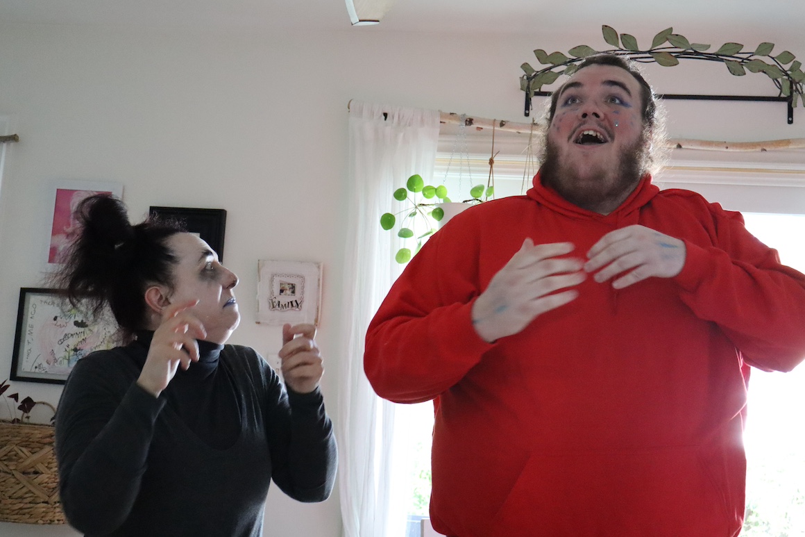 Sara Masciotra-Milstein’s Me and You and the Highland Coo presented by Happy as a Clam Productions presented in the TD Finance Studio at Soulpepper as part of the fringe sounds light hearted enough. Jackie and Charlie, a couple of Canadians who have just got their Masters at Aberdeen plan a road trip in search of a highland cow plushie while waiting for their visa applications to clear. But there is trouble at home. Jackie’s father is in the last throes of cancer and Charlie’s brother hasd serious mental health problems. They decide to ignore text messages because if something important happens “they” will call (no they won’t says my personal experience).