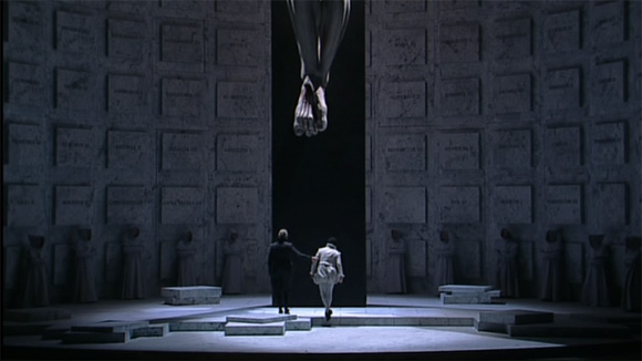 The first time I tried to watch Willy Decker’s 2004 production of Verdi’s Don Carlo at De Nederlandse Opera I failed to get past Rolando Villazón in doublet and hose. To anyone familiar with British TV comedy of a certain era the resemblance is just too close and I couldn’t get beyond the idea of Stephen Fry as Felipe II and Miranda Richardson as Elisabetta. This time around I watched the highly illuminating video introduction and read Wily Decker’s useful essay on his production concept before tackling the piece proper. I’m glad I did that and I’m glad I came back to this recording because it is very fine and it was very useful to have Decker and Chailly’s perspectives on the dramaturgy and the music.